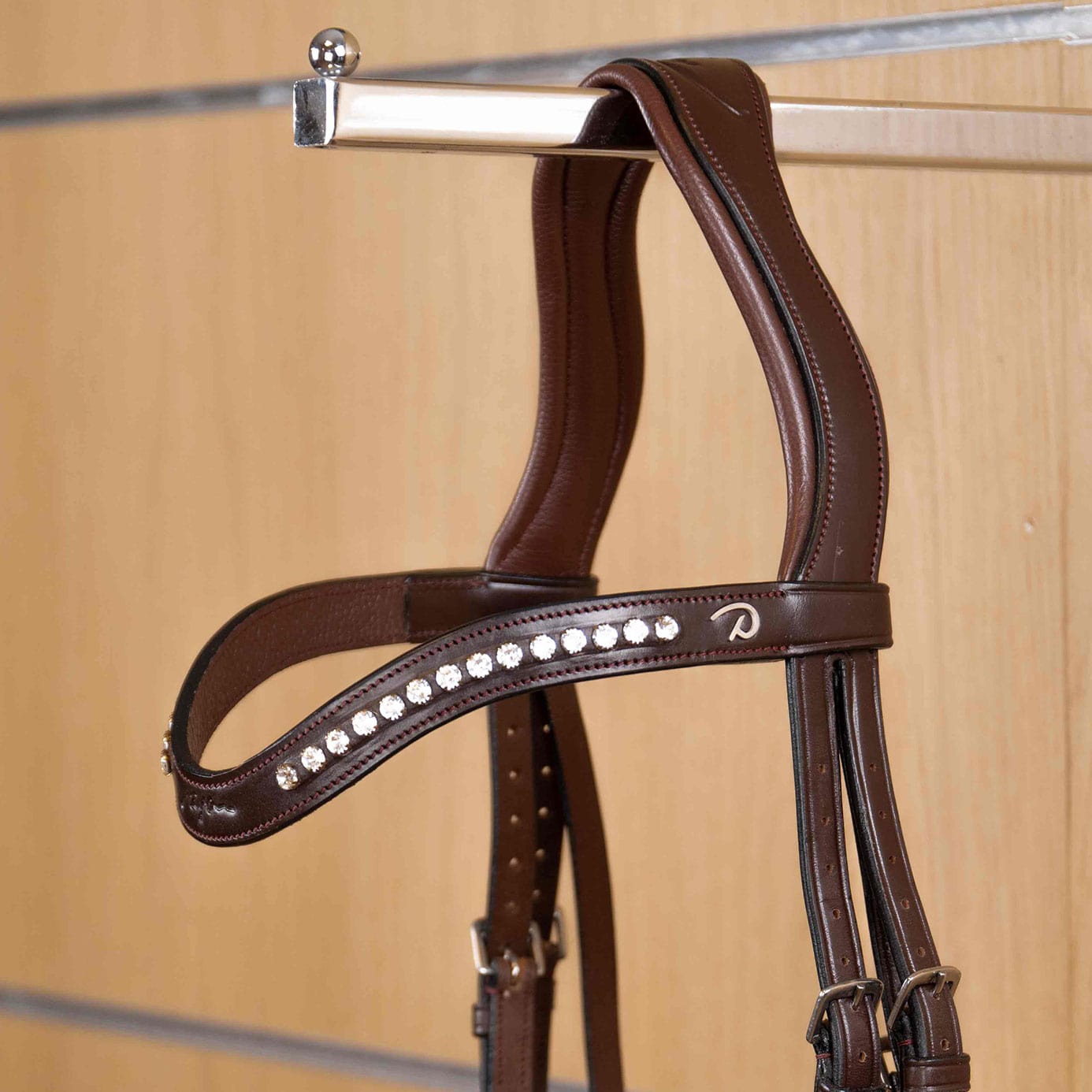 The Dy'on New English Half Swarovski Browband is available in Brown, in sizes Pony, Cob, Full or Extra Full.