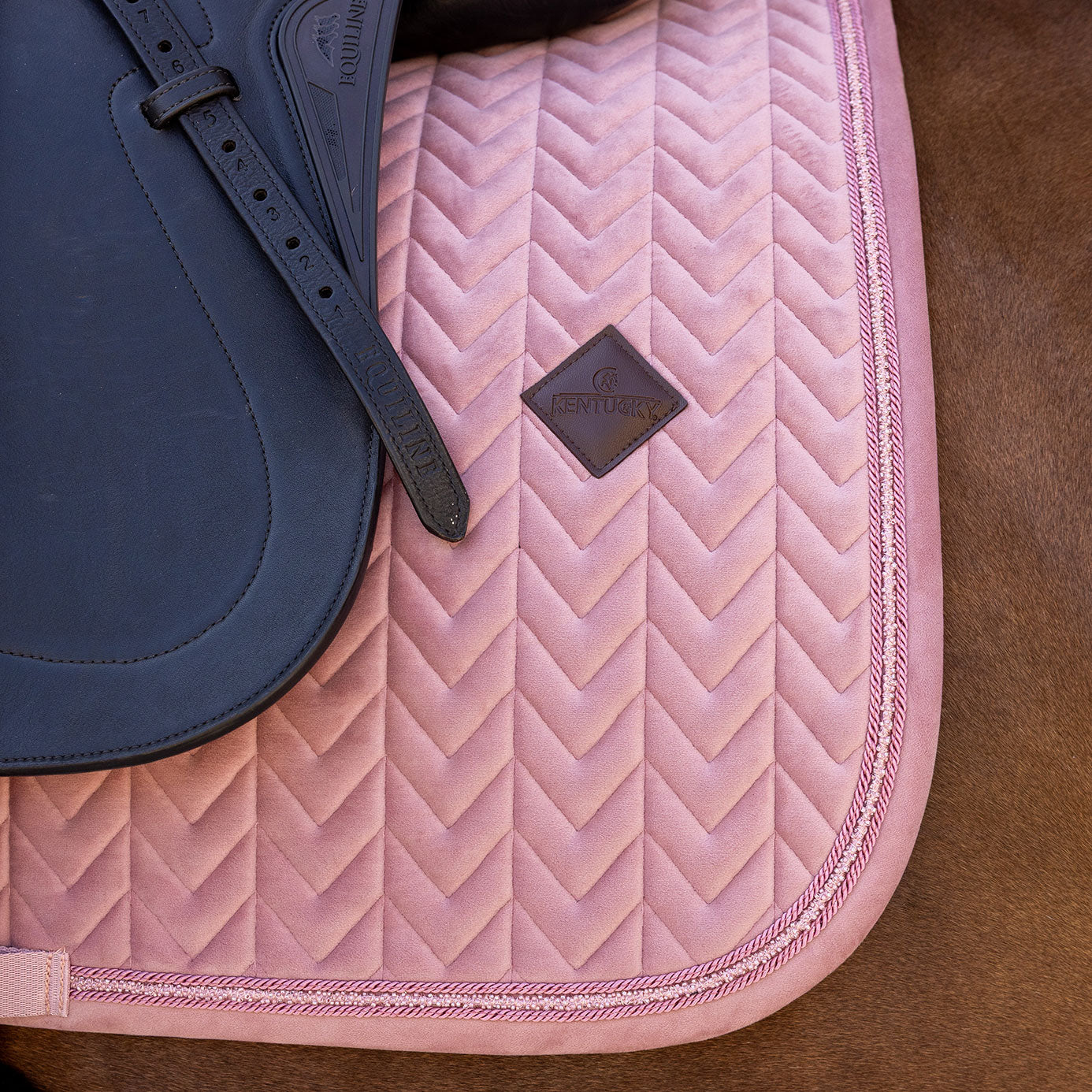 Elevate your horse’s look with the Kentucky Velvet Mini Pearls Dressage Saddle Cloth in Old Rose pink, a perfect blend of refinement and functionality.