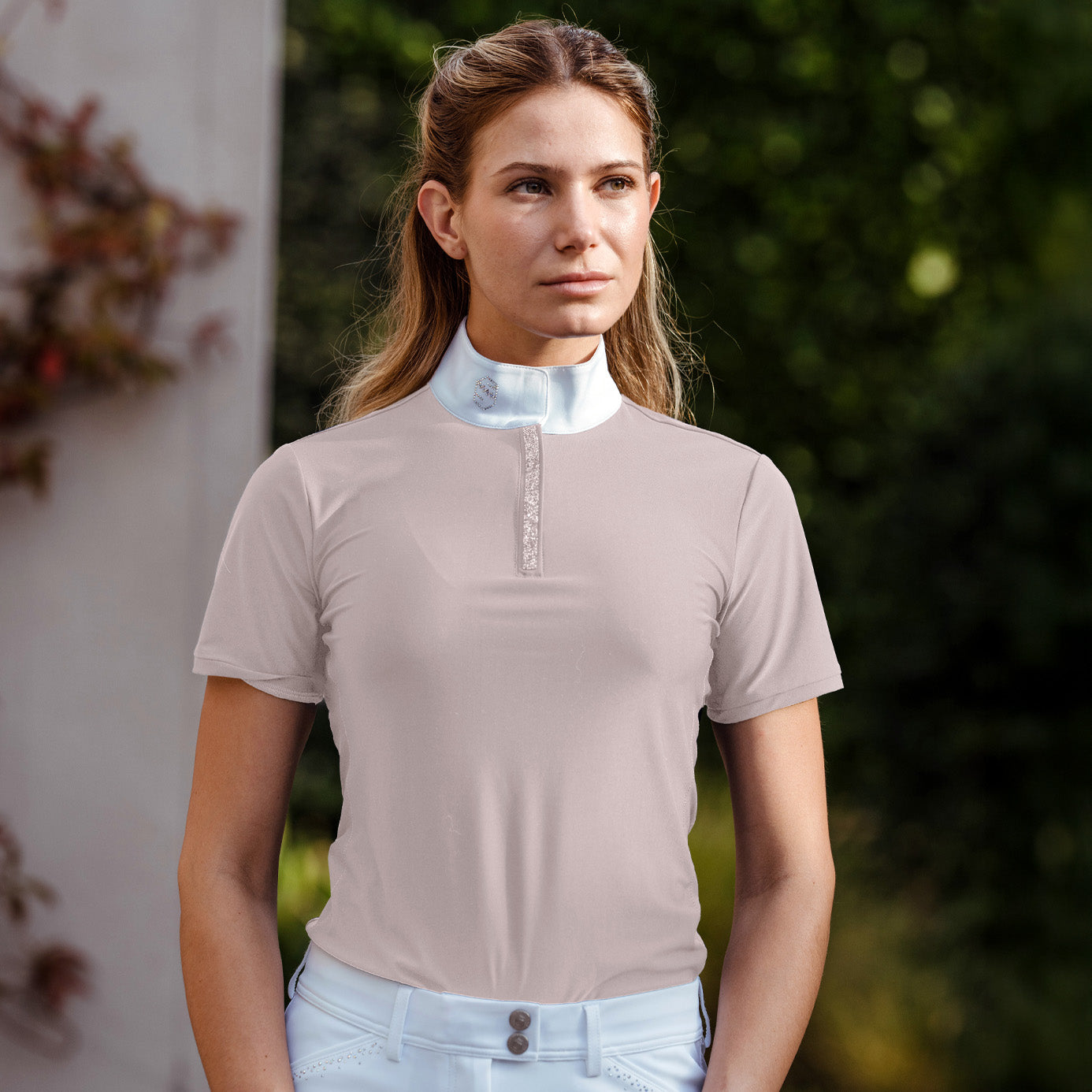 Bring luminous elegance to your summer shows with the Samshield Roxy Premium Competition Shirt in delicate Powder Pink, designed for riders who adore Swarovski crystals.