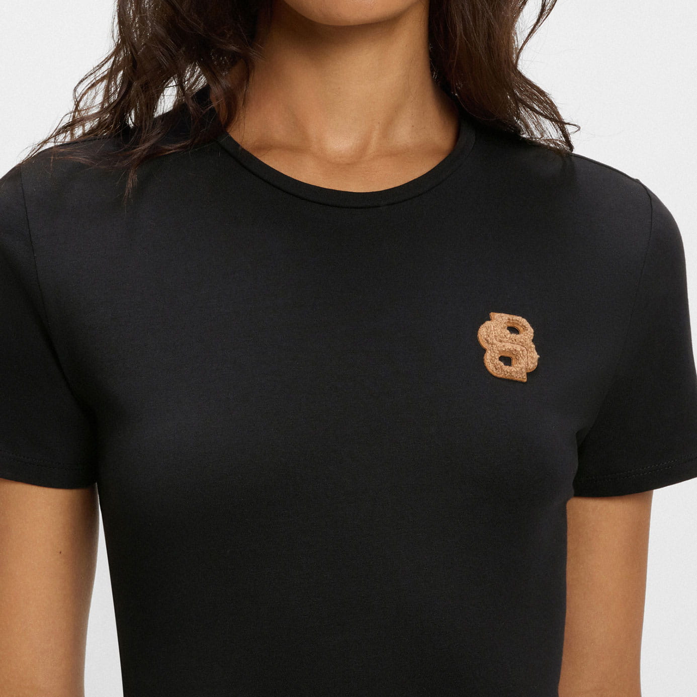The BOSS Equestrian Maya BB Logo T-Shirt is available in Black, in sizes XS (UK 8), S (UK 10), M (UK 12), and L (UK 14).