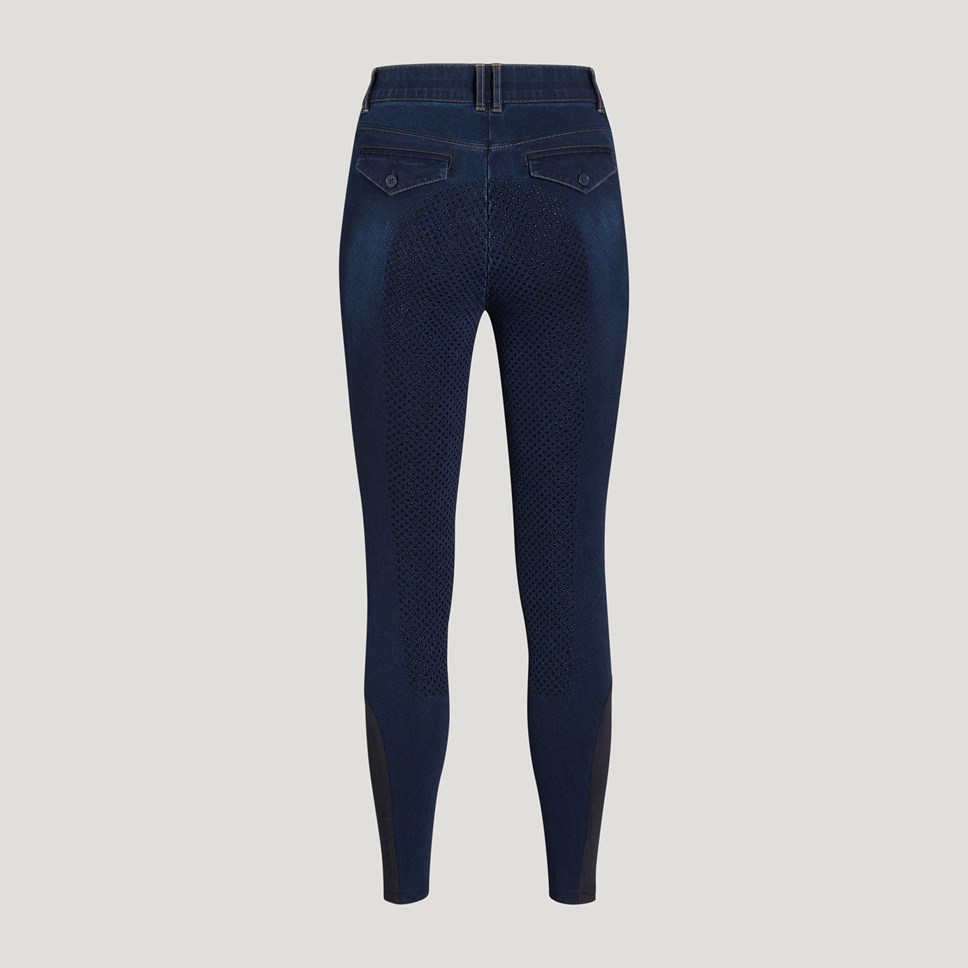 Crafted in a rich dark blue rinse wash, these breeches blend the look of classic jeans with the comfort and performance of technical riding wear.
