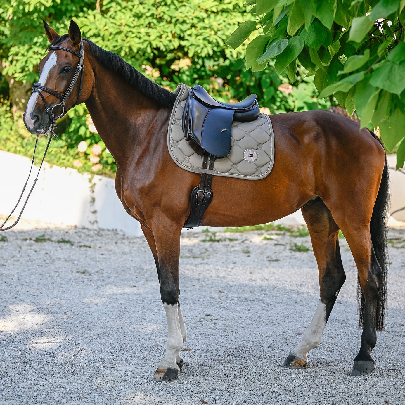 Bring a touch of understated sparkle to your dressage look with the Tommy Hilfiger Liberty Saddle Cloth in elegant Taupe - where classic styling meets refined glamour.