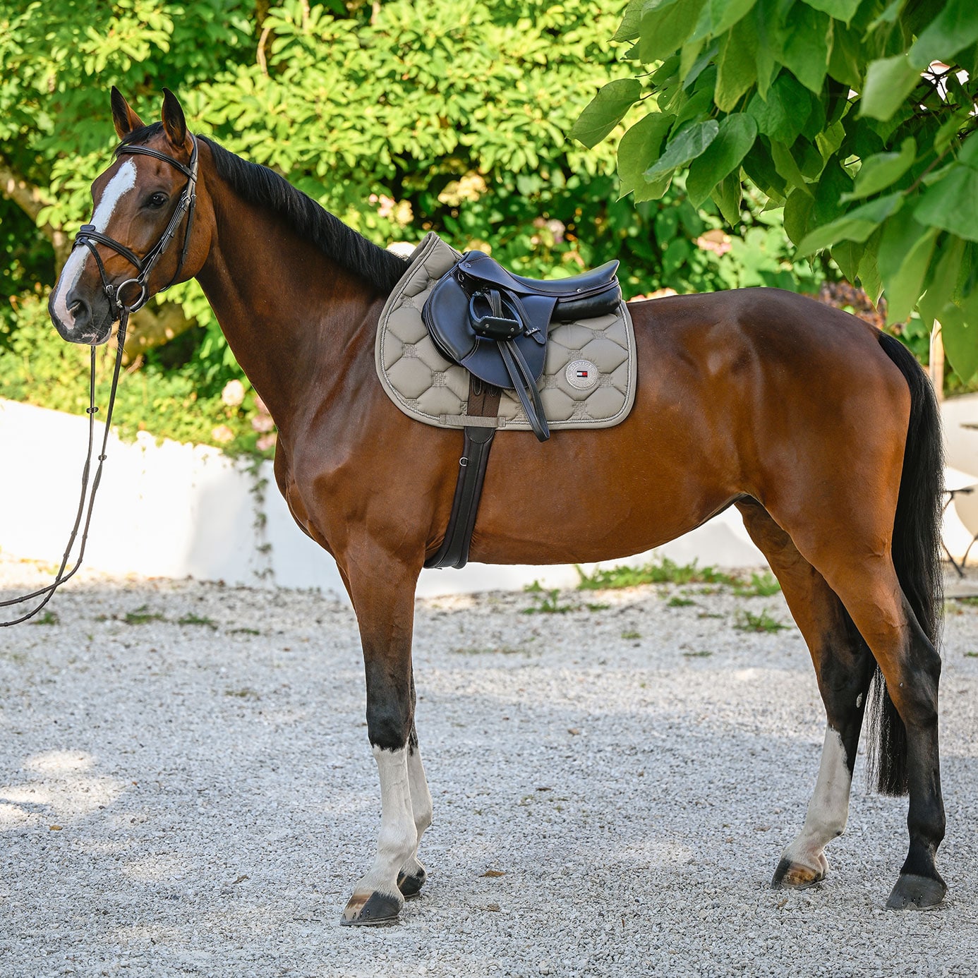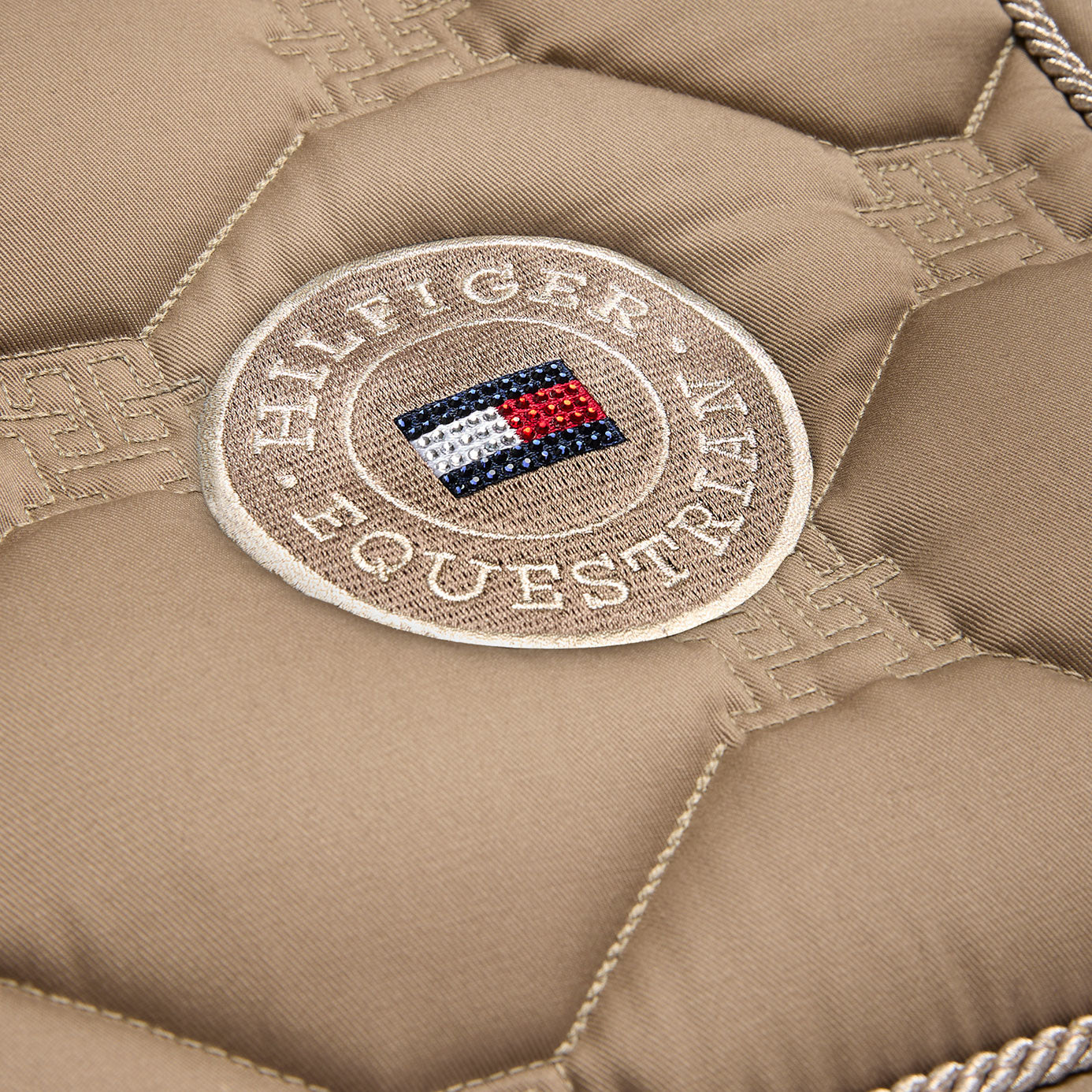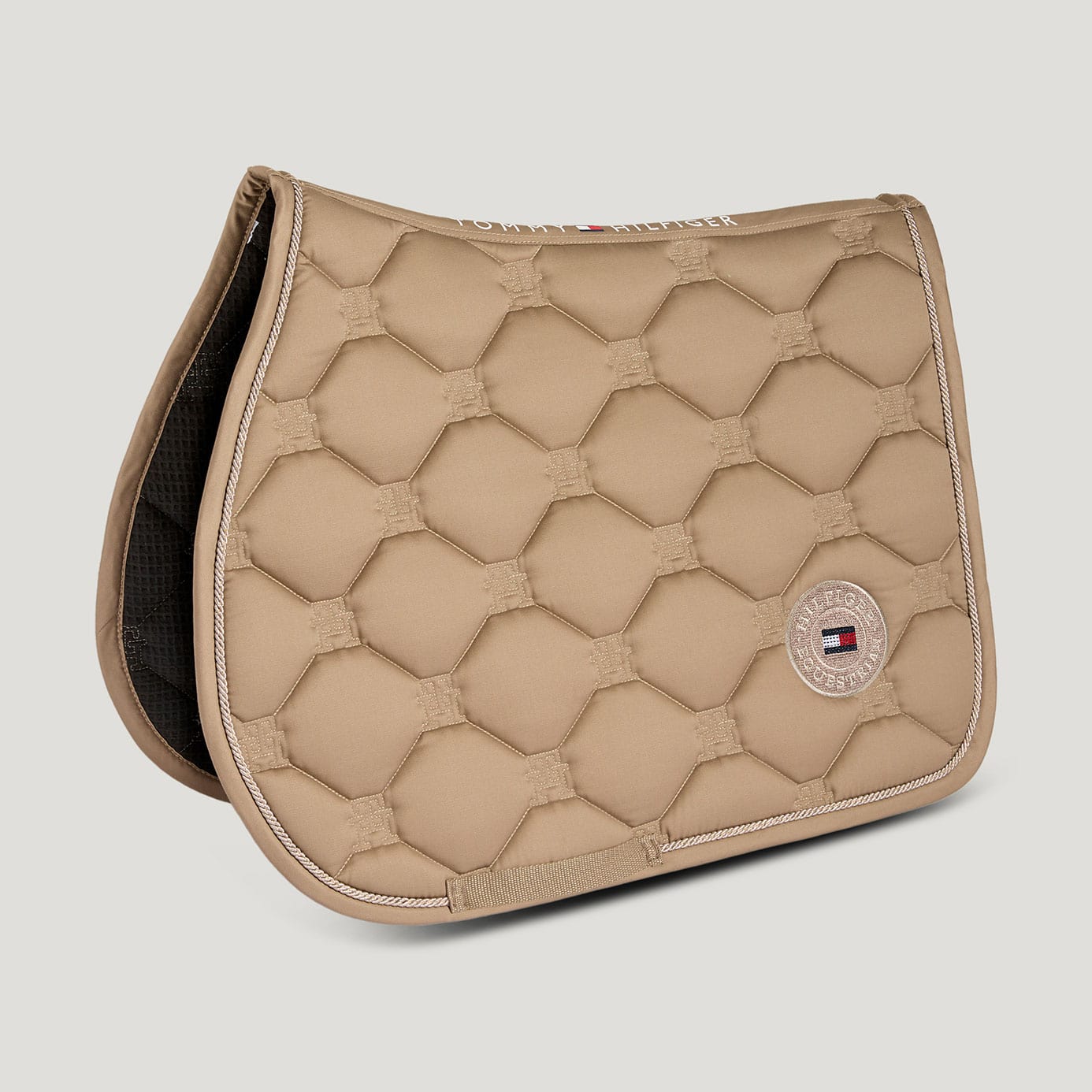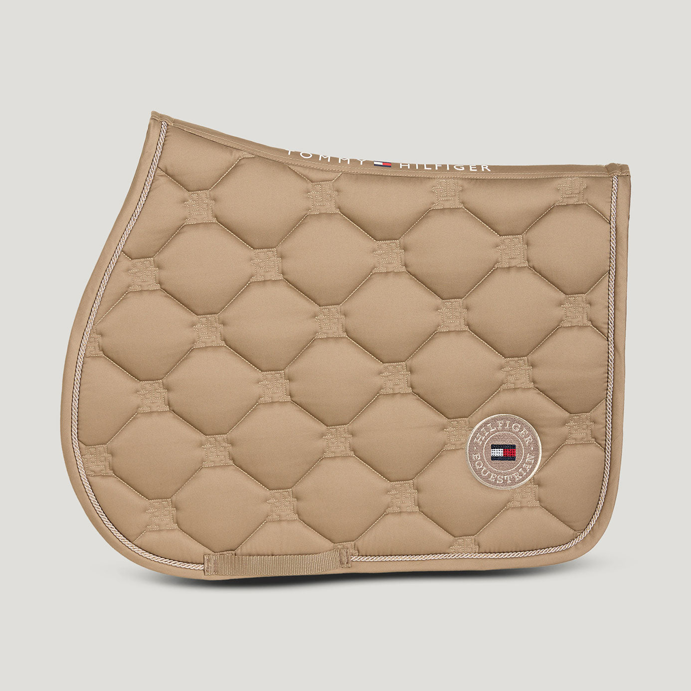 Bring a hint of sparkle to your ride with the Tommy Hilfiger Liberty Jumping Saddle Cloth in elegant Taupe - where classic design meets subtle glamour.