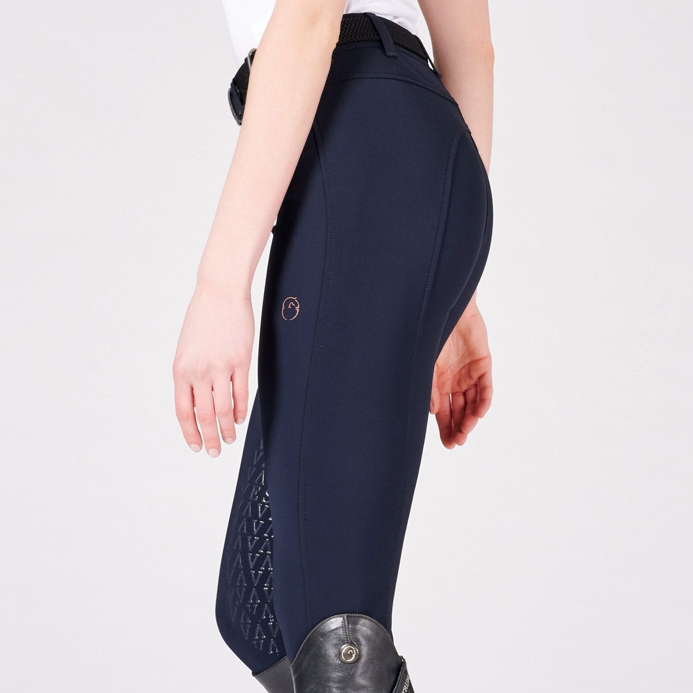 These horse riding breeches feature two squared-off front pockets, and no back pockets for a streamlined design that ensures a close contact with the saddle.